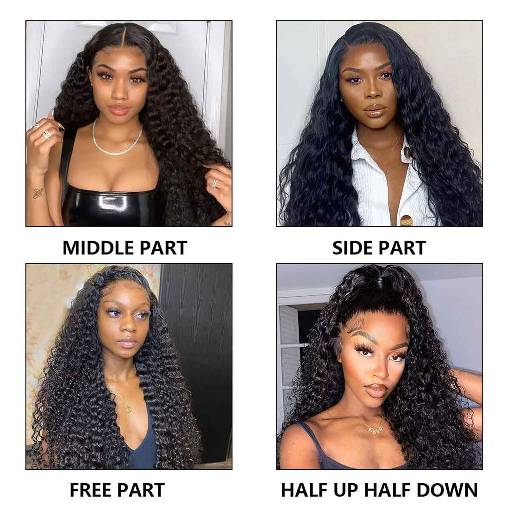 13x4 HD Transparent Curly Deep Wave 180% Density Lace Frontal Wigs Pre Plucked Virgin Human Hair Wigs